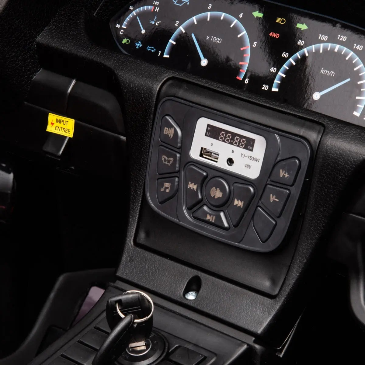 The 48V Rocket 2 Seater Big Ride on Car for Kids is designed with luxury, fun, and safety in mind. Featuring 2 powerful 24V 14AH batteries and tubeless air tires, this car can easily handle rough terrain and last for hours of playtime. The adjustable leather seats provide a comfortable and smooth ride, while the LED lights and pedal brake keep kids safe. With a maximum weight of 220 lbs, this ride-on car is suitable for kids ages 14 and up. For added convenience and entertainment, the car includes a key start, MP3 + AUX + USB + Bluetooth, and a USB socket. Let your kids take their adventures to the next level with the 48W